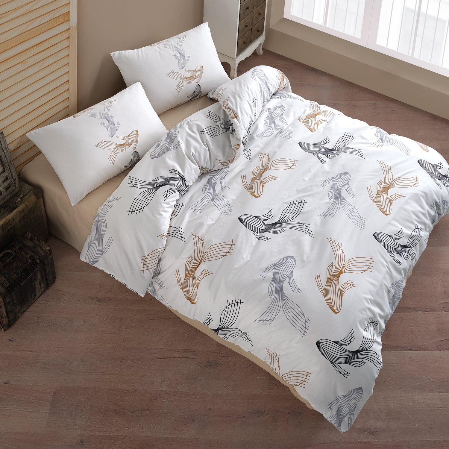 Set içeriği: 1 adet nevresim (200x220 cm), 1 adet çarşaf (240x260 cm), 2 adet yastık kılıfı (50x70 cm)