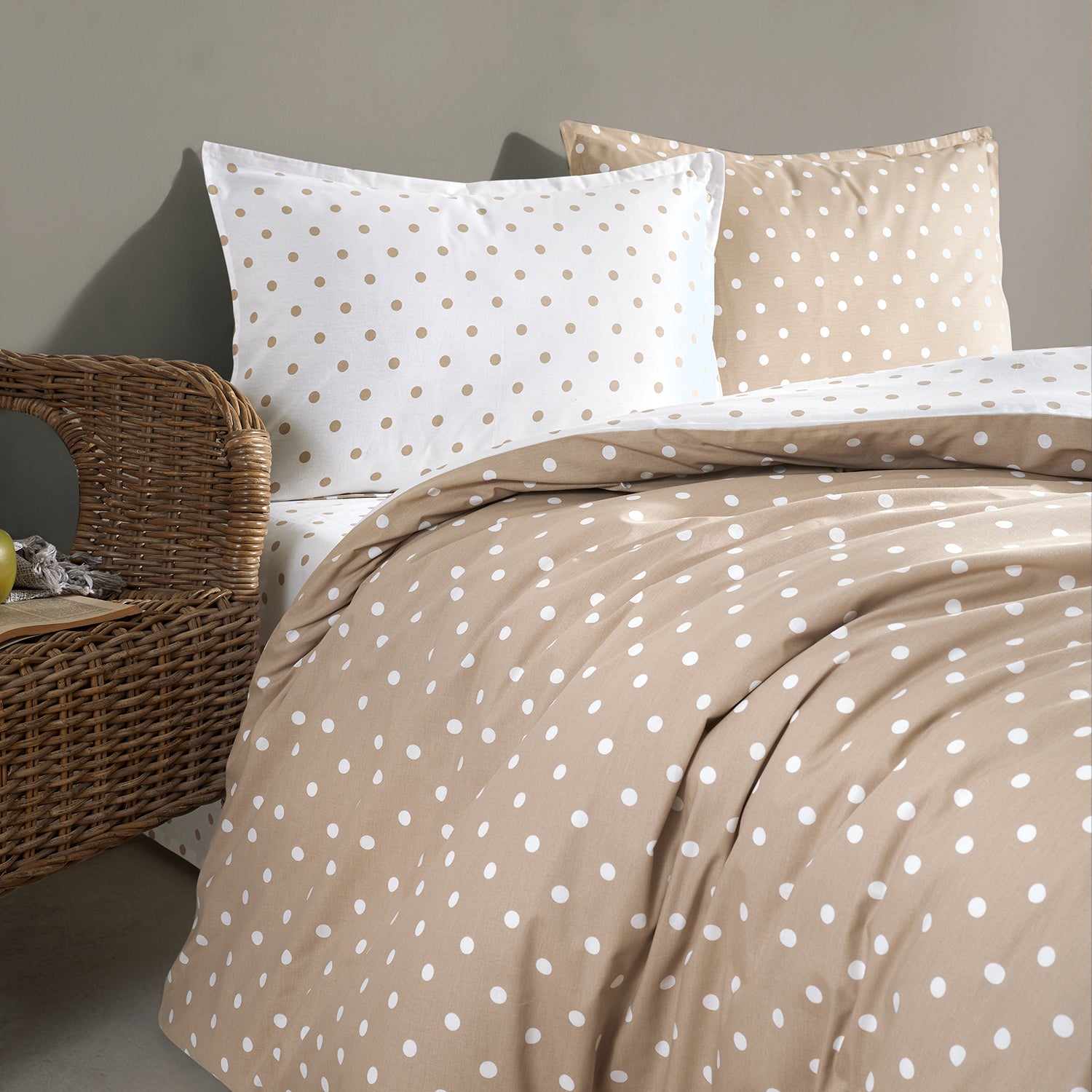 Dots Capuccino %100 Pamuk Ranforce Çift Kişilik Çift Taraflı Nevresim Takımı