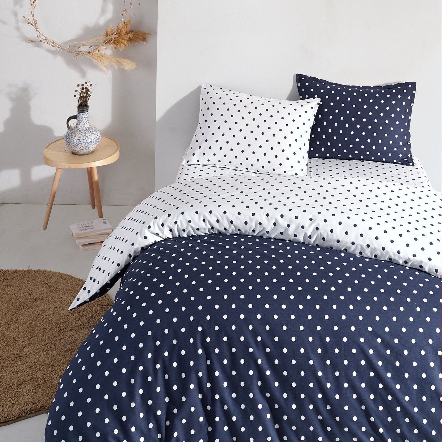 Dots Mavi %100 Pamuk Ranforce Battal Boy Çift Taraflı Nevresim Takımı