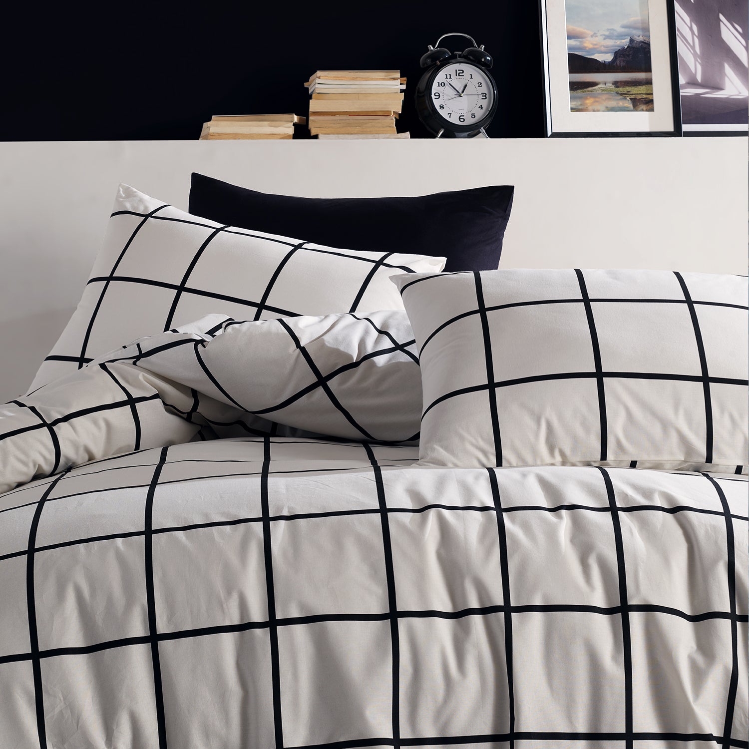 Karo Siyah %100 Pamuk Ranforce Çift Kişilik Nevresim Takımı