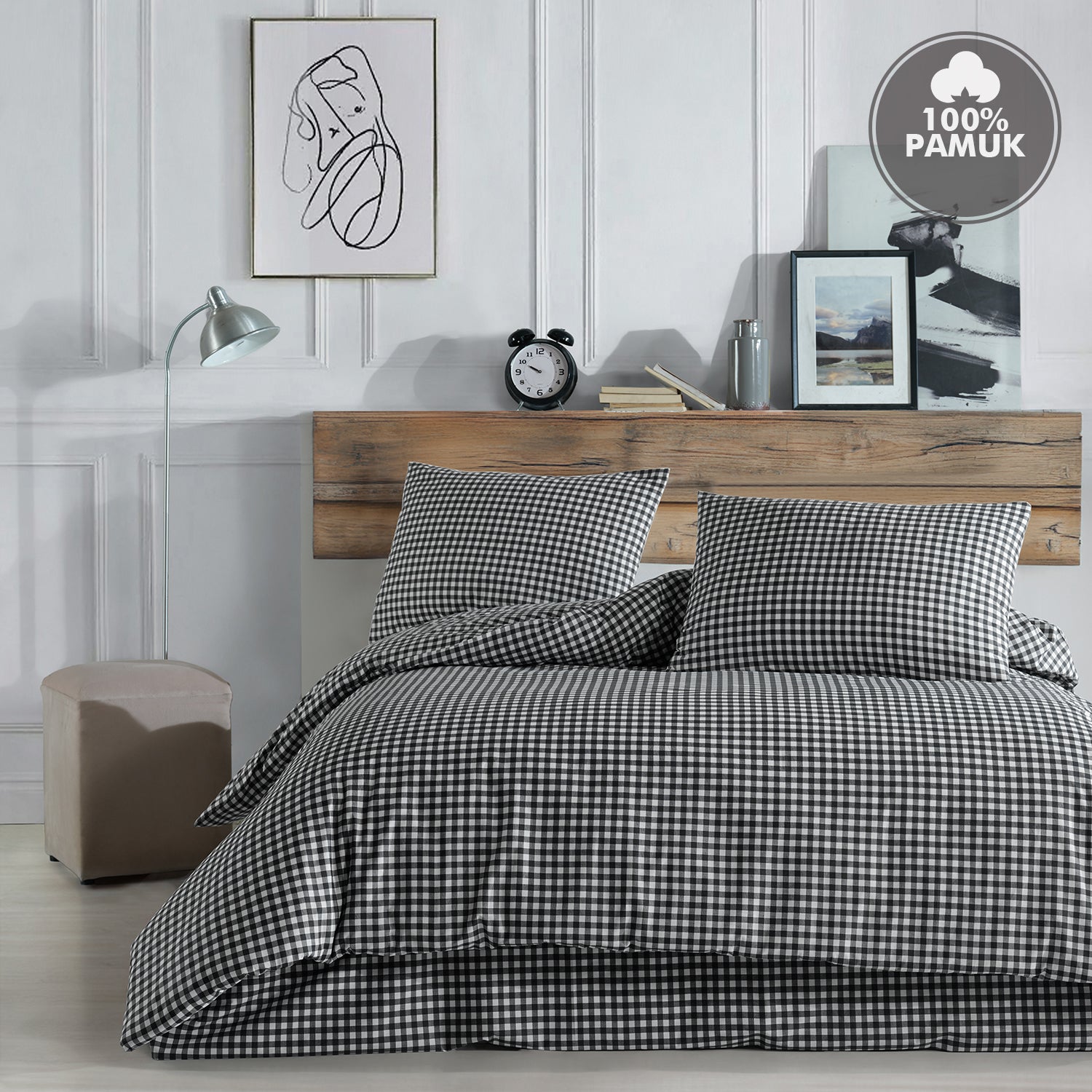 Mini Kare Siyah %100 Pamuk Ranforce Battal Boy Nevresim Takımı