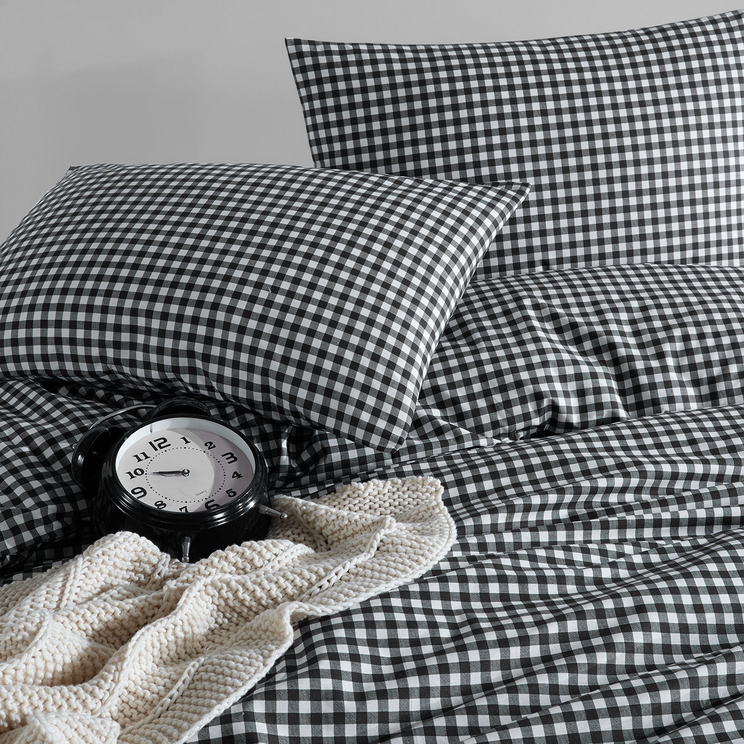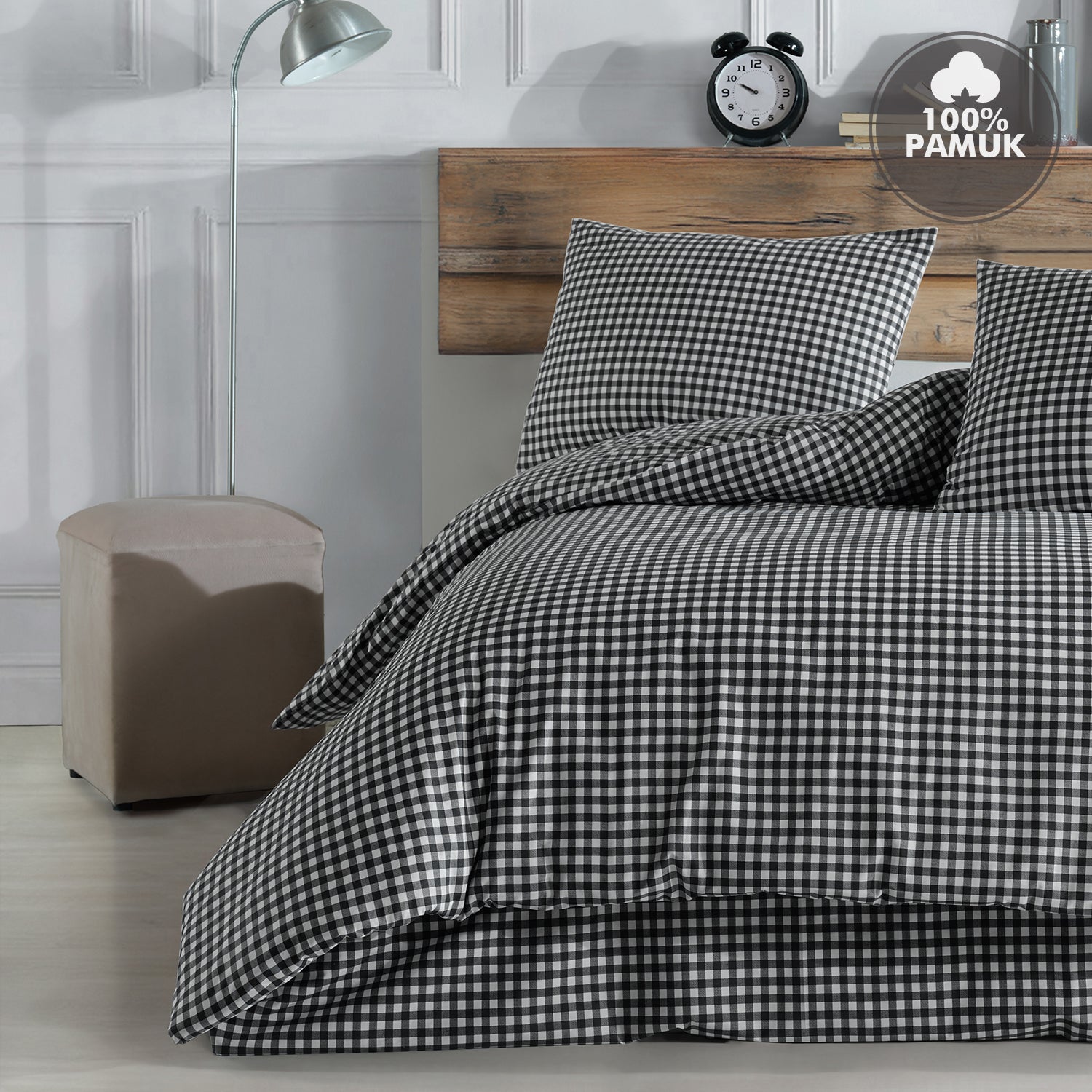 Mini Kare Siyah %100 Pamuk Ranforce Tek Kişilik Nevresim Takımı