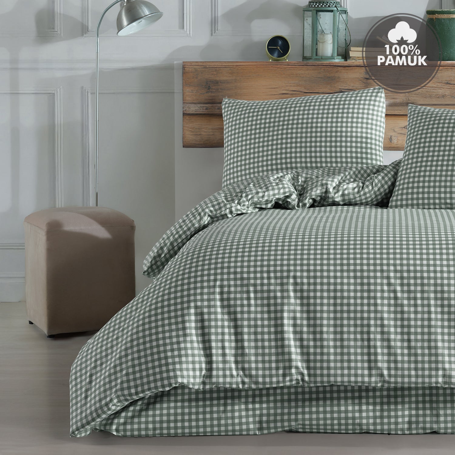 Mini Kare Yeşil %100 Pamuk Ranforce Tek Kişilik Nevresim Takımı