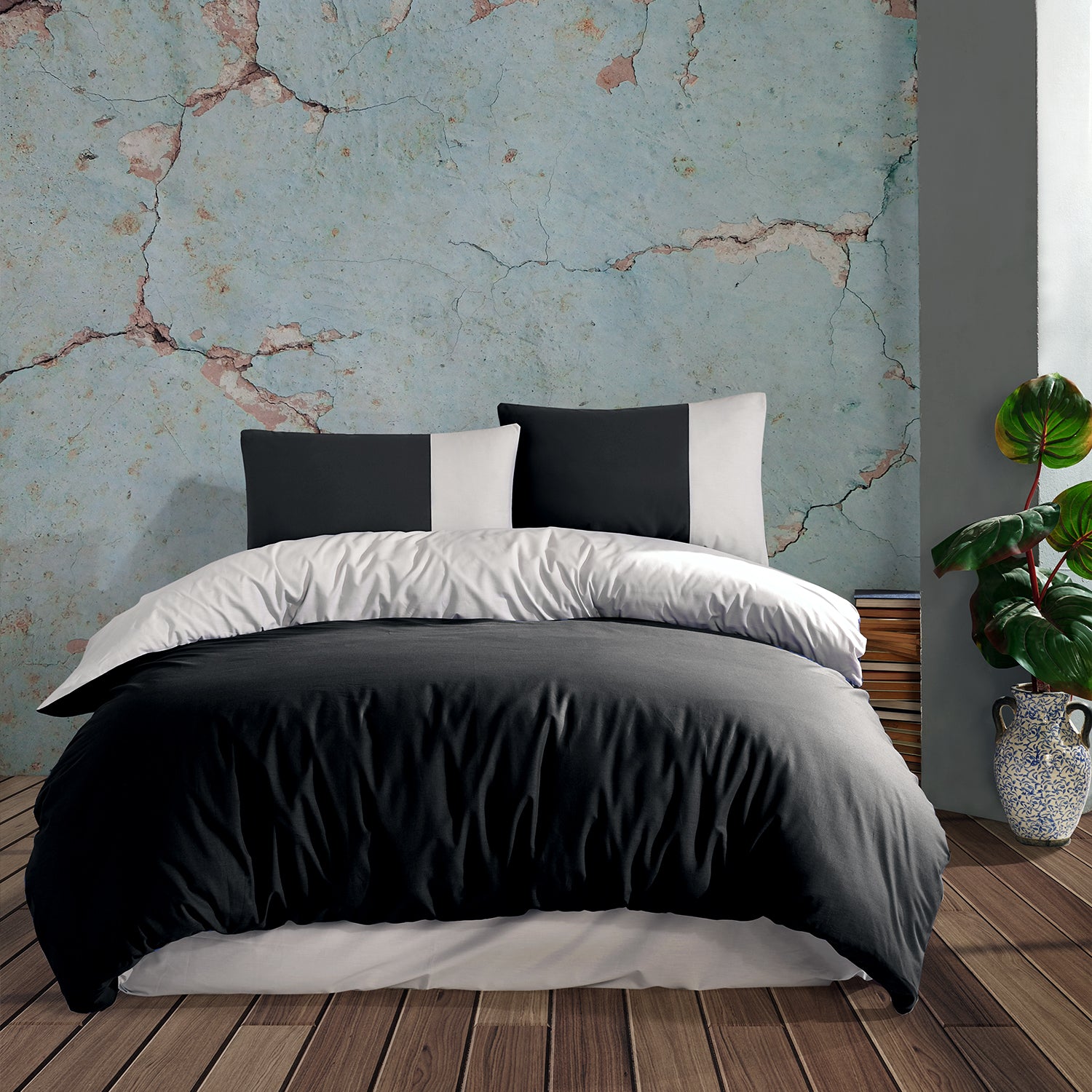 Plain Siyah Gri %100 Pamuk Ranforce Battal Boy Çift Taraflı Nevresim Takımı