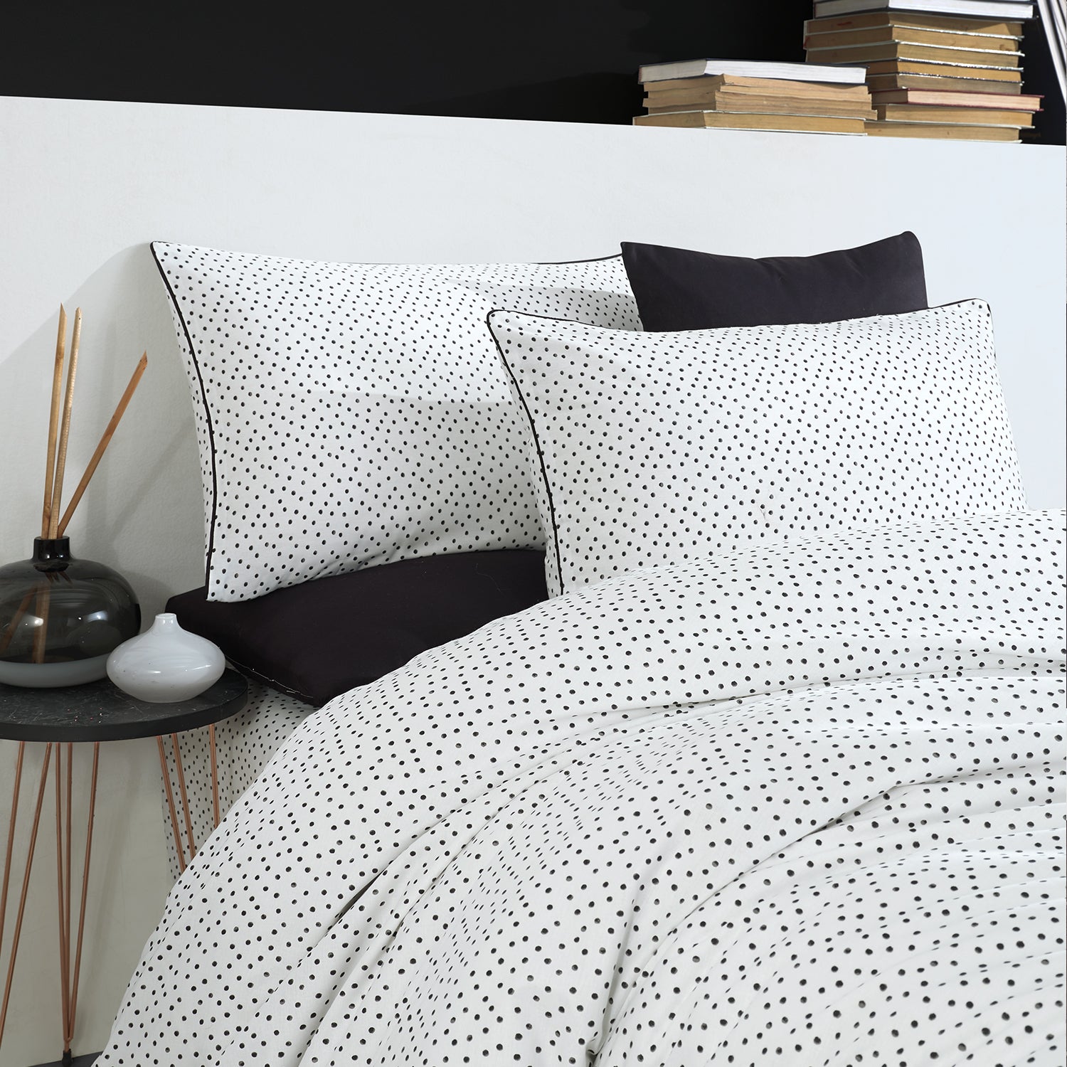 Set içeriği: 1 adet nevresim (240x220 cm), 1 adet çarşaf (240x260 cm), 2 adet yastık kılıfı (50x70 cm)