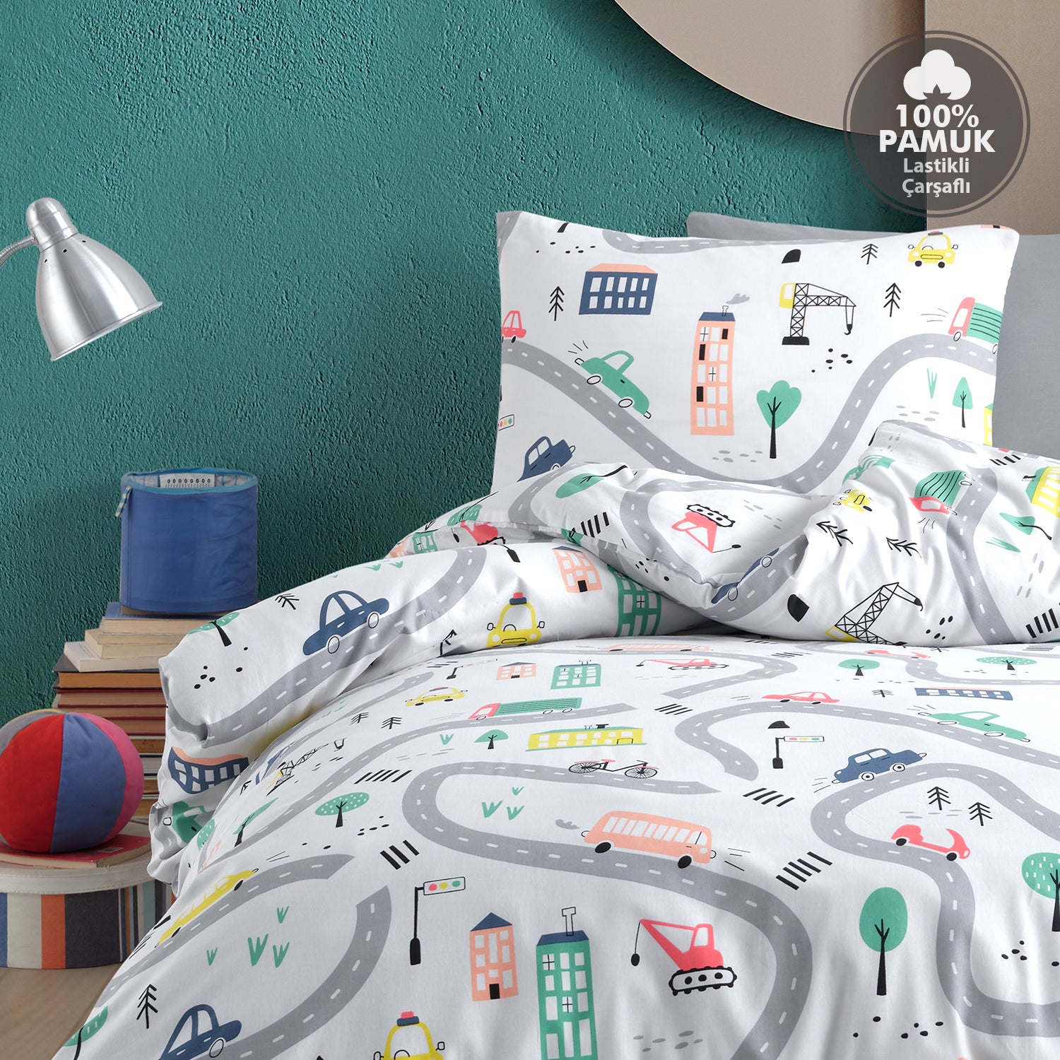 Route %100 Pamuk Tek Kişilik Lastikli Çarşaflı Nevresim Takımı