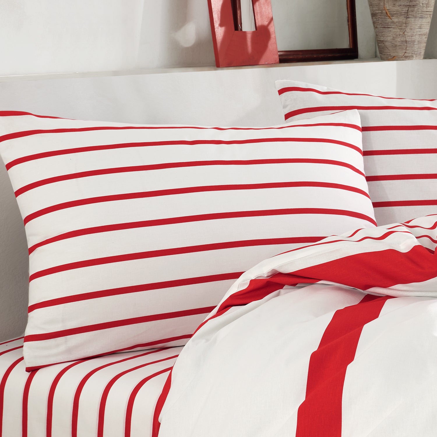 Simple Line Kırmızı %100 Pamuk Ranforce 2'li Yastık Kılıfı