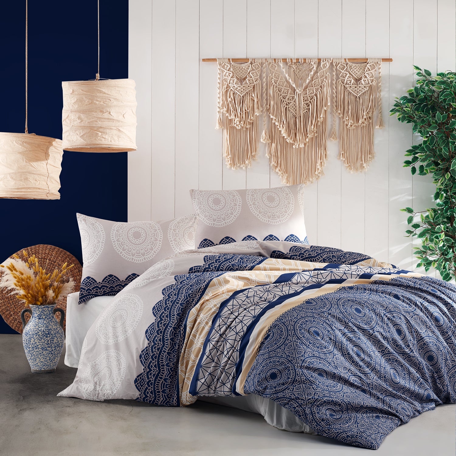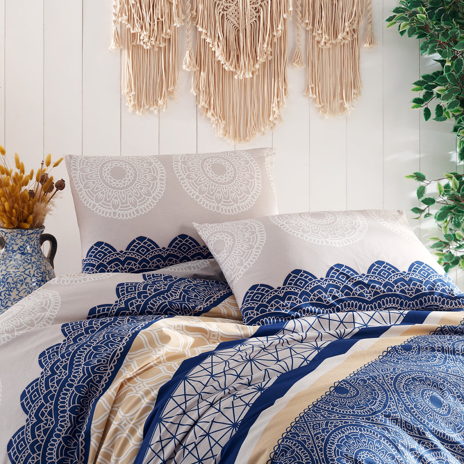 Set içeriği: 1 adet nevresim (160x220 cm), 1 adet çarşaf (160x240 cm), 1 adet yastık kılıfı (50x70 cm)