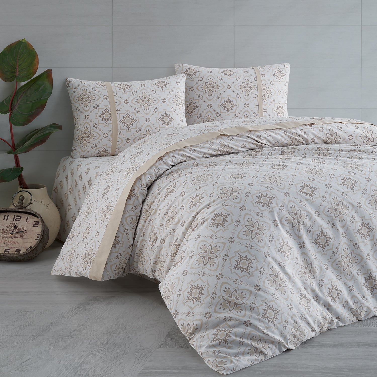 Set içeriği: 1 adet nevresim (200x220 cm), 1 adet çarşaf (240x260 cm), 2 adet yastık kılıfı (50x70 cm)